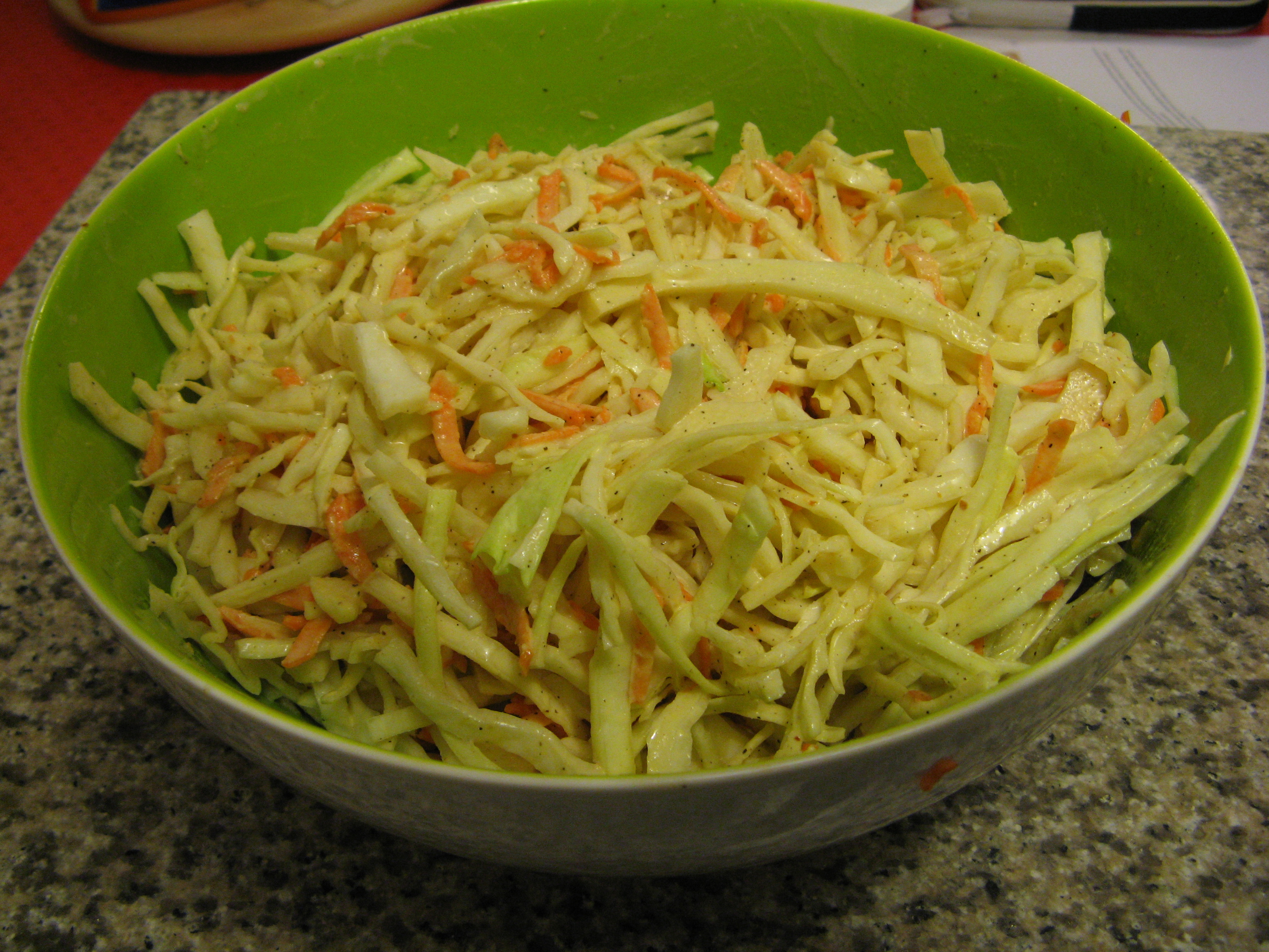 Et voilà c’est prêt ! Qui a dit que le coleslaw était compliqué à faire ? Evidemment, la sauce que je vous donner ici peut être modifiée selon vos goûts : curry, coriandre, une touche de piment de Cayenne, vous avez l’embarras du choix. Pour rendre cette recette un peu plus hawaïenne, ajoutez-y quelques morceaux d’ananas.