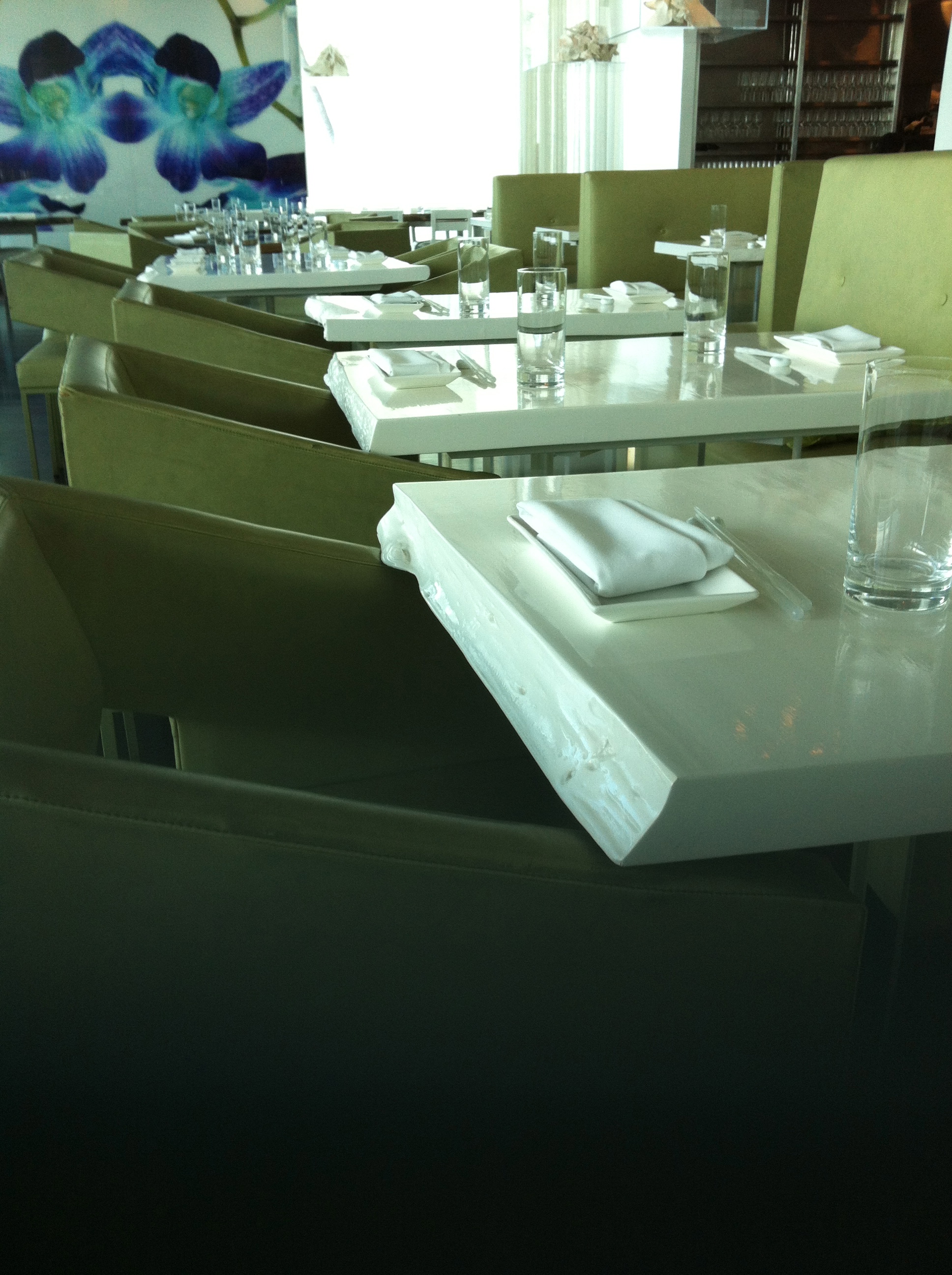 Vous l’aurez compris, nous aimons Morimoto. Cette star, s’illustrant dans Iron Chef America sur Food Network, a mis au goût du jour la cuisine japonaise. Il dispose de plusieurs restaurants à travers le monde dont certains aux Etats-Unis. Voici quelques photos de ce qui était proposé en aout 2012 à Waikiki. Le cadre était peut-être moins original que celui de Philadelphie, mais ce qui se trouvait dans l’assiette était tout aussi délicieux.