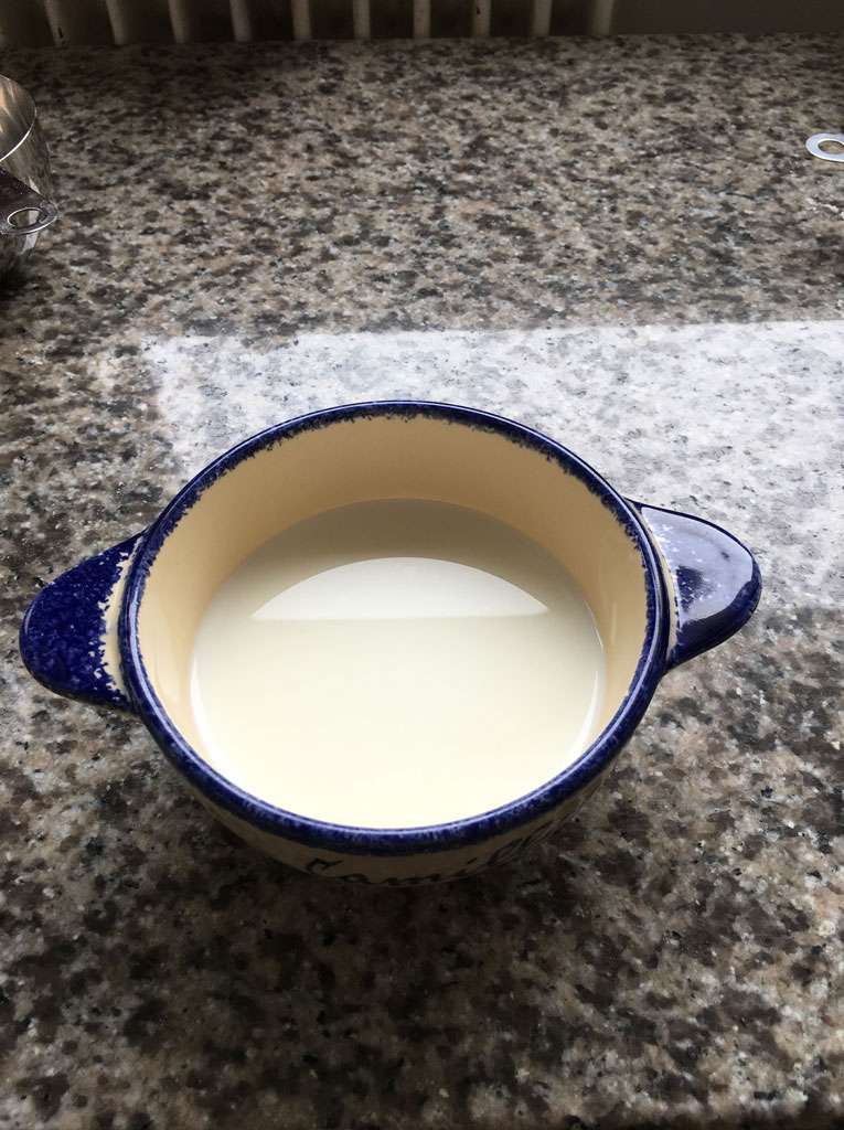 – 120 mL de lait fermenté (Si vous n’en avez pas, ajouter 1/2 cuillère à soupe de jus de citron ou de vinaigre à 120 mL de lait habituel)