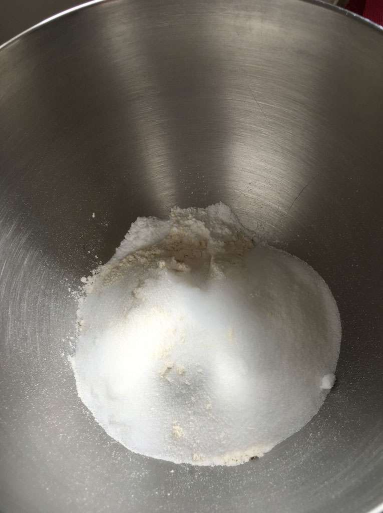 - Dans un bol (celui de votre KitchenAid par exemple), mettre ensemble les ingrédients secs : la farine, le sucre, la baking powder, la baking soda et le sel.