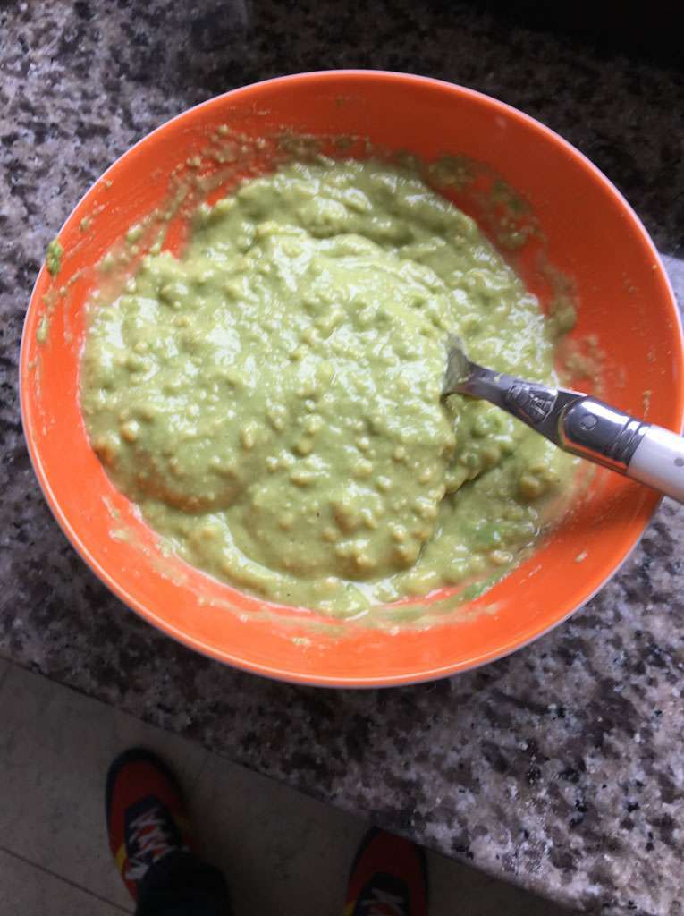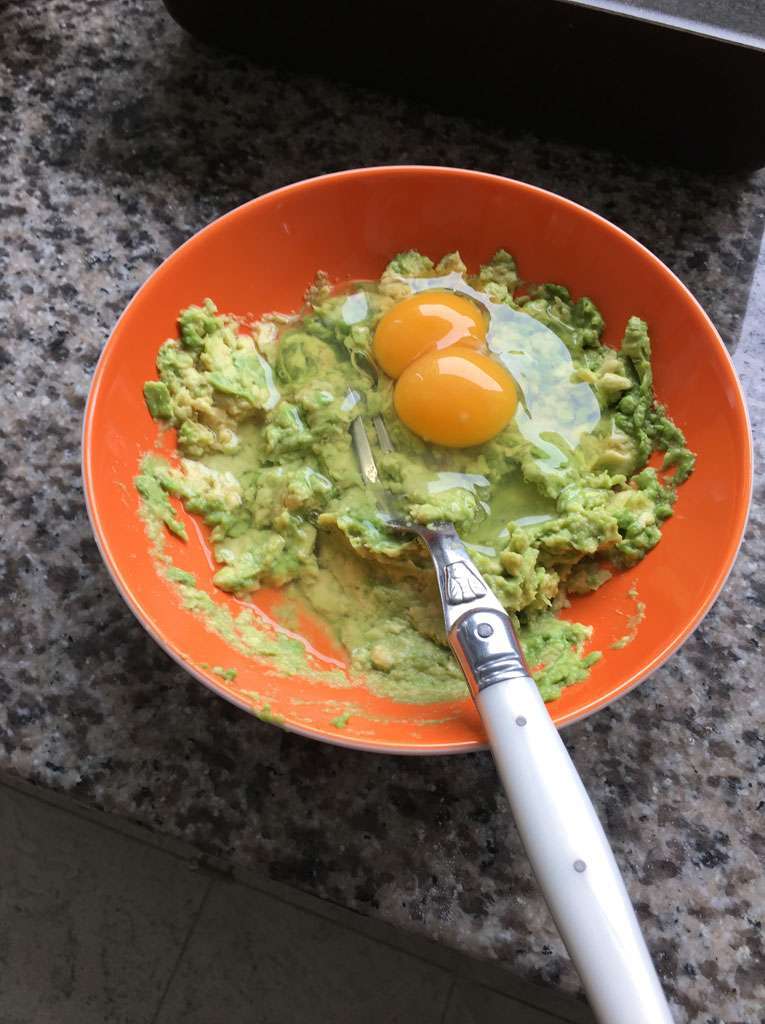 - Dans un autre bol, battre l’oeuf et l’avocat. Ajouter le lait fermenté.