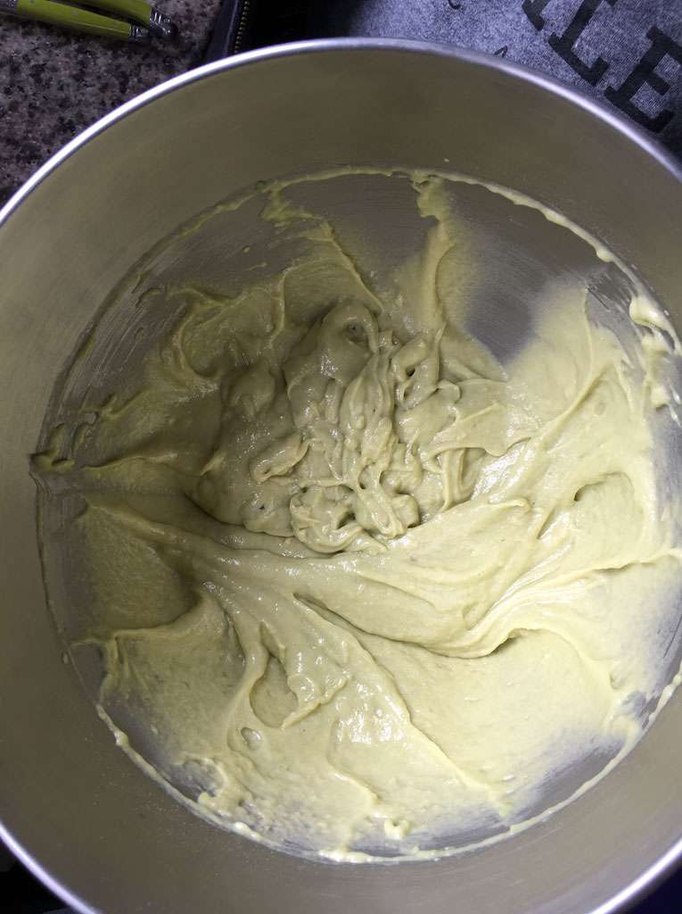 Moule beurré et fariné Mélange avocat-oeuf Mélange avocat-oeuf et lait - Ajouter le mélange liquide obtenu à votre mélange sec. Si vous utilisez le KitchenAid, équipez le de la feuille avec maryse. N’oubliez quand même pas de bien racler le fond avec une maryse pour être sûr d’obtenir un mélange homogène. C’est aussi à ce moment que vous pouvez rajouter les noix de Pecan