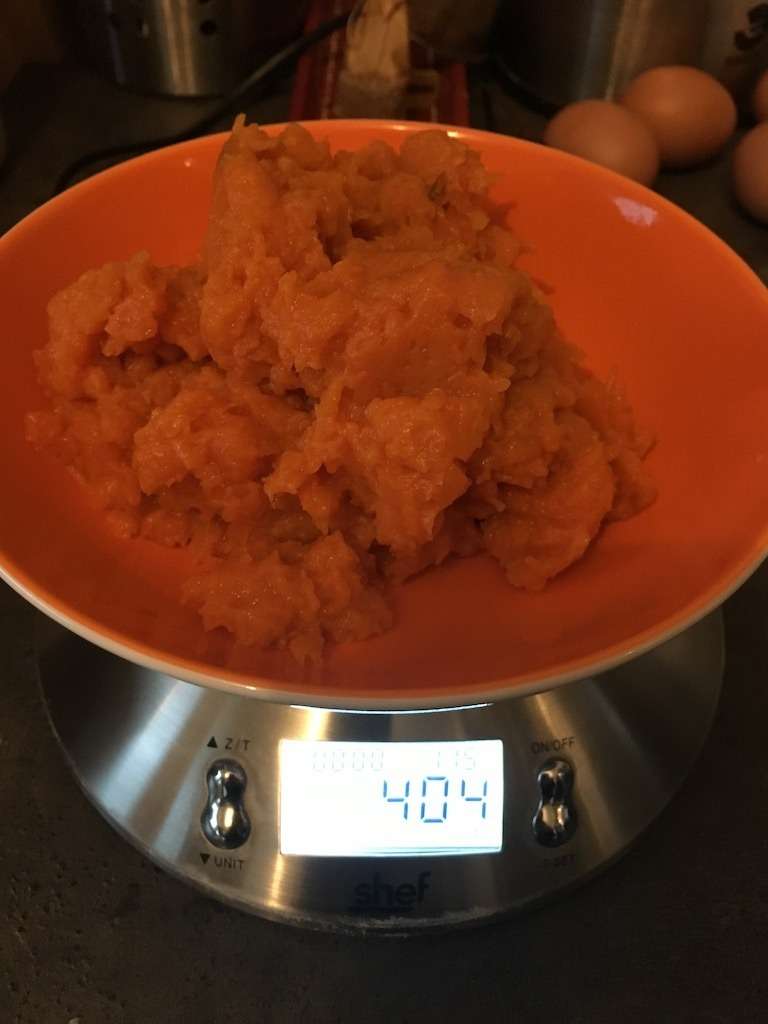 Oeufs et lait mélangés - Dans une casserole de taille moyenne, verser la purée de citrouille (environ 400g). Ajouter les différentes épices : cannelle, muscade et clou de girofle. Cuire à feu moyen pendant 5 à 10 minutes, jusqu’à l’obtention d’une purée assez sèche.