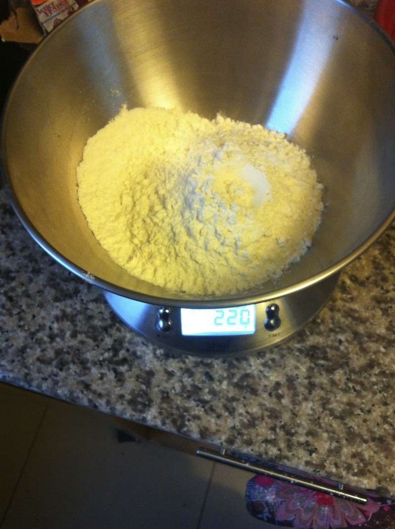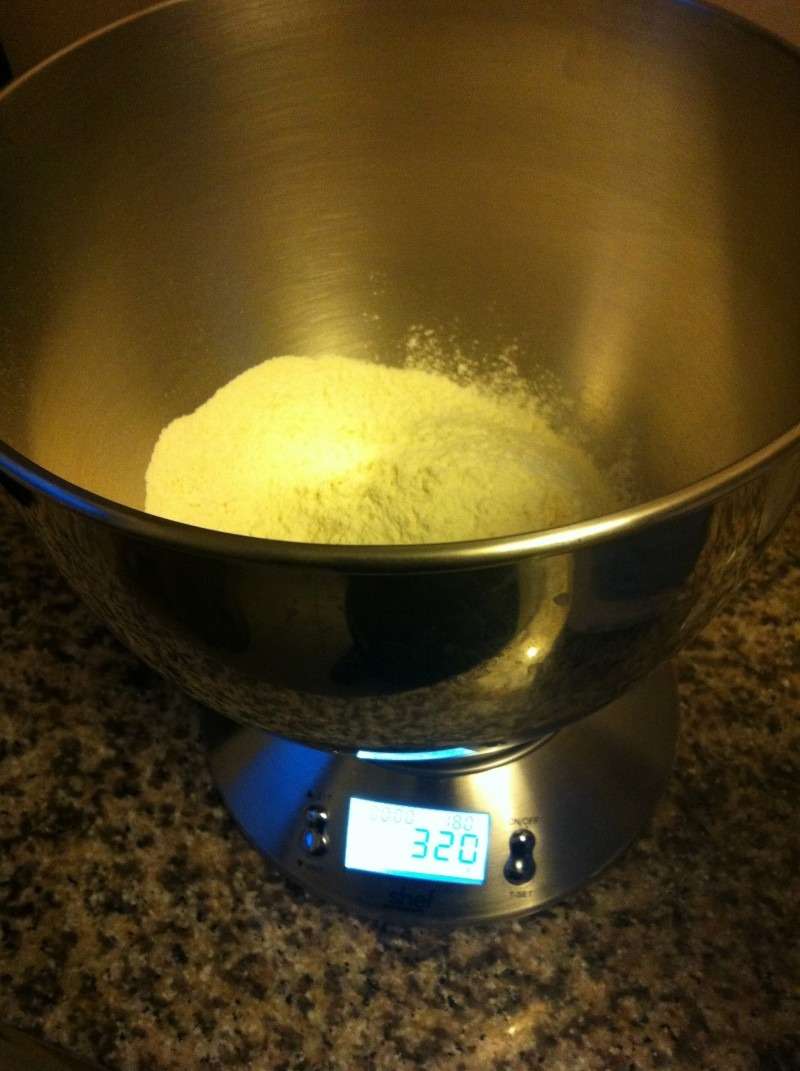 1) Mélanger la farine et le sel dans le bol de votre Kitchenaid Artisan.