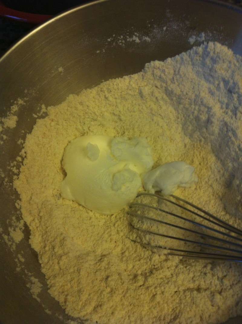 4) Ajouter le shortening dans ce mélange sec jusqu’à l’obtention d’une texture sableuse.