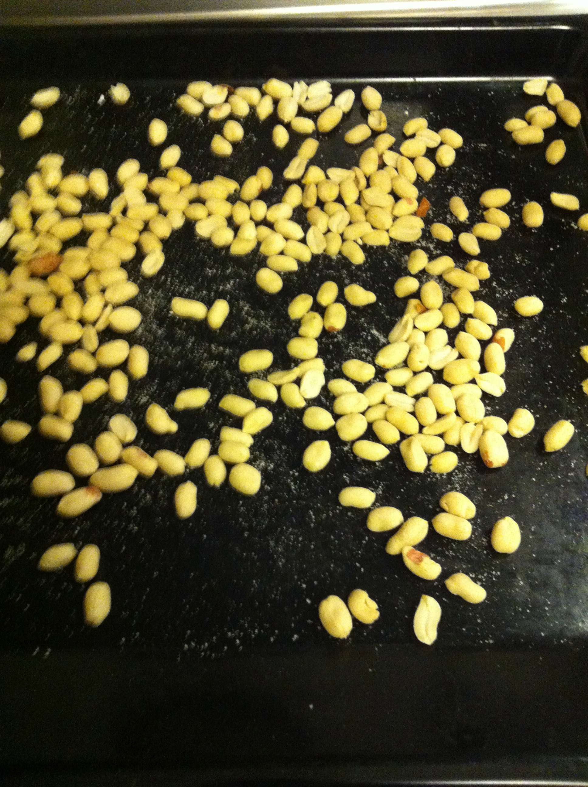 1) Préchauffer votre four à 180°C. Etaler les cacahuètes dans un plat que vous placerez dans le four en position haute jusqu’à ce qu’elles soient bien dorées.