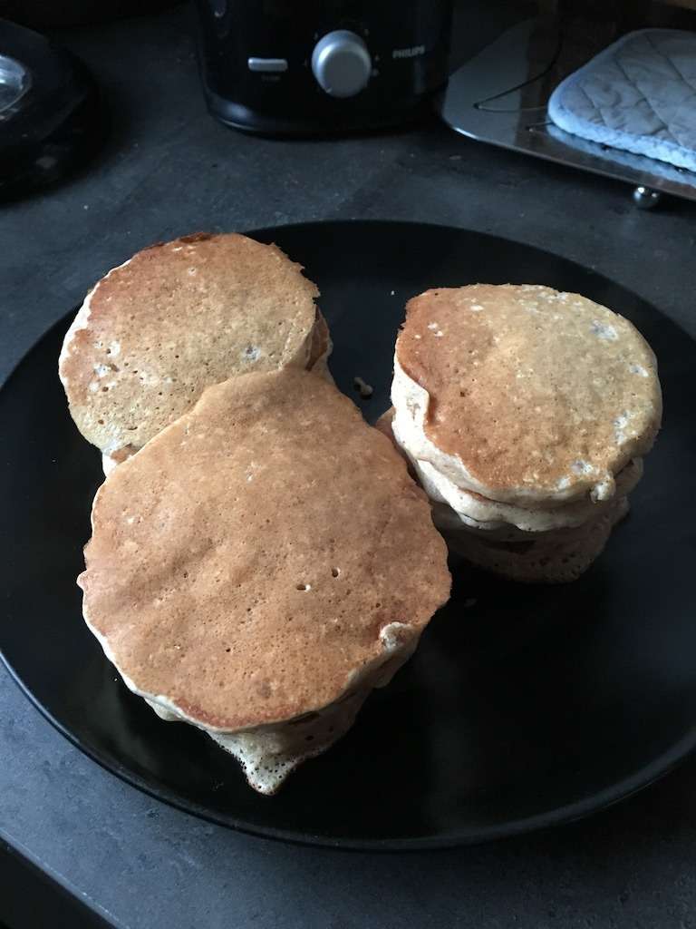 Et voilà, vous pouvez servir ces pancakes américains à l’avoine avec quelques fruits ou du sirop d’érable.