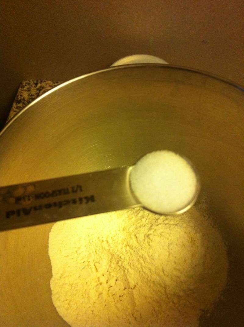 1) Mélanger la farine et le sel dans le bol de votre Kitchenaid Artisan.