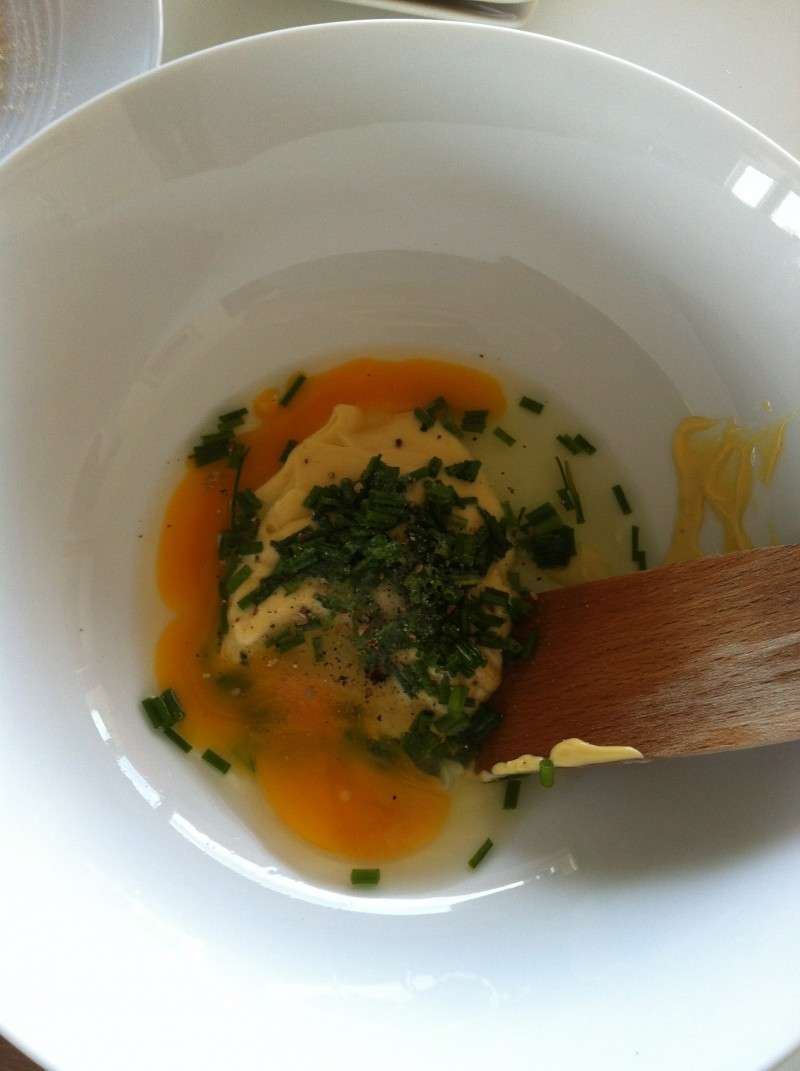 2) Saler et poivrer. Ajouter également la ciboulette coupée préalablement.