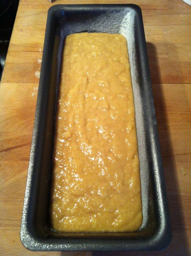 8) Dans un moule à cake ou à pain beurré et fariné, verser la pâte et enfourner pendant 55 minutes à 180°C.