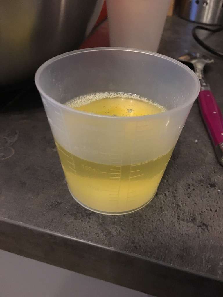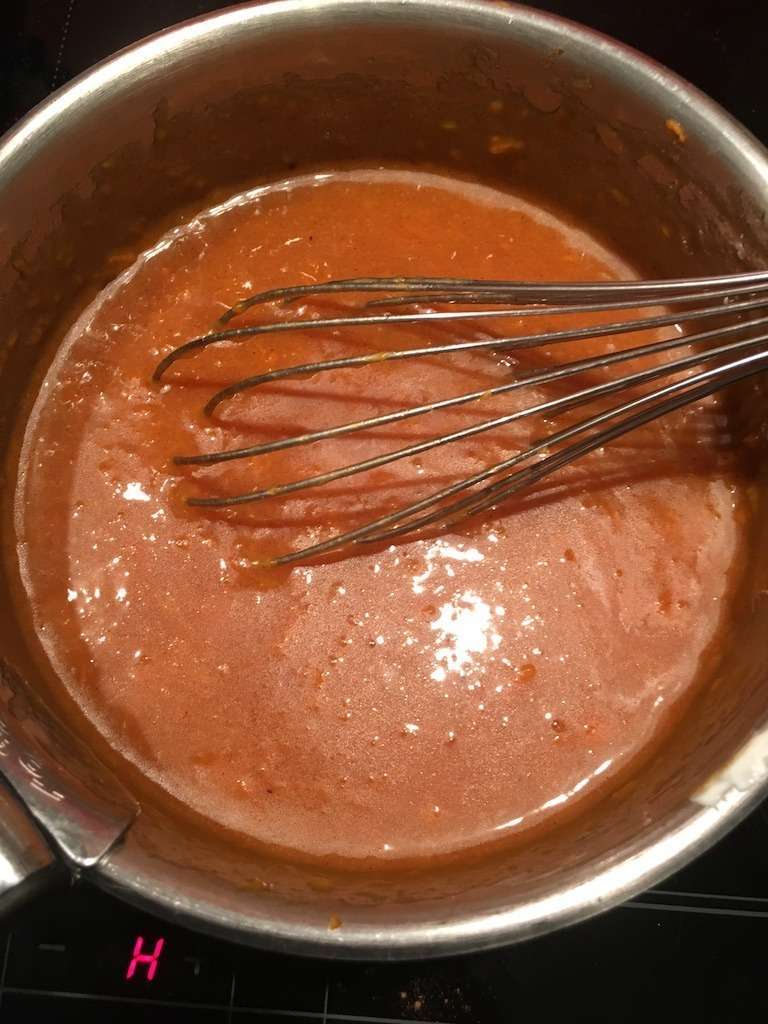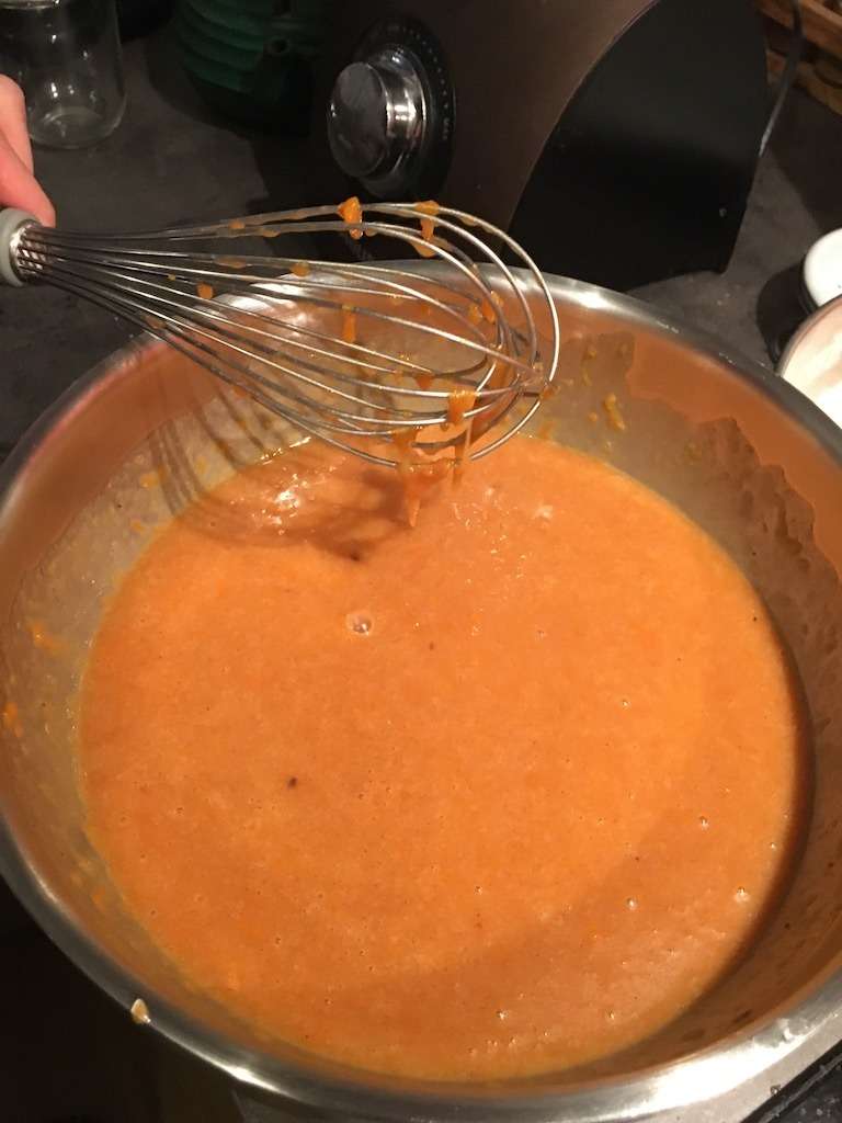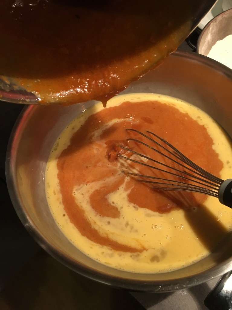 6. Ajouter la purée dans le mélange lait/oeufs. Mélanger au fouet.