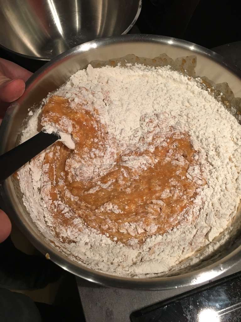 7. A l’aide d’une spatule, incorporer à ce mélange la farine.