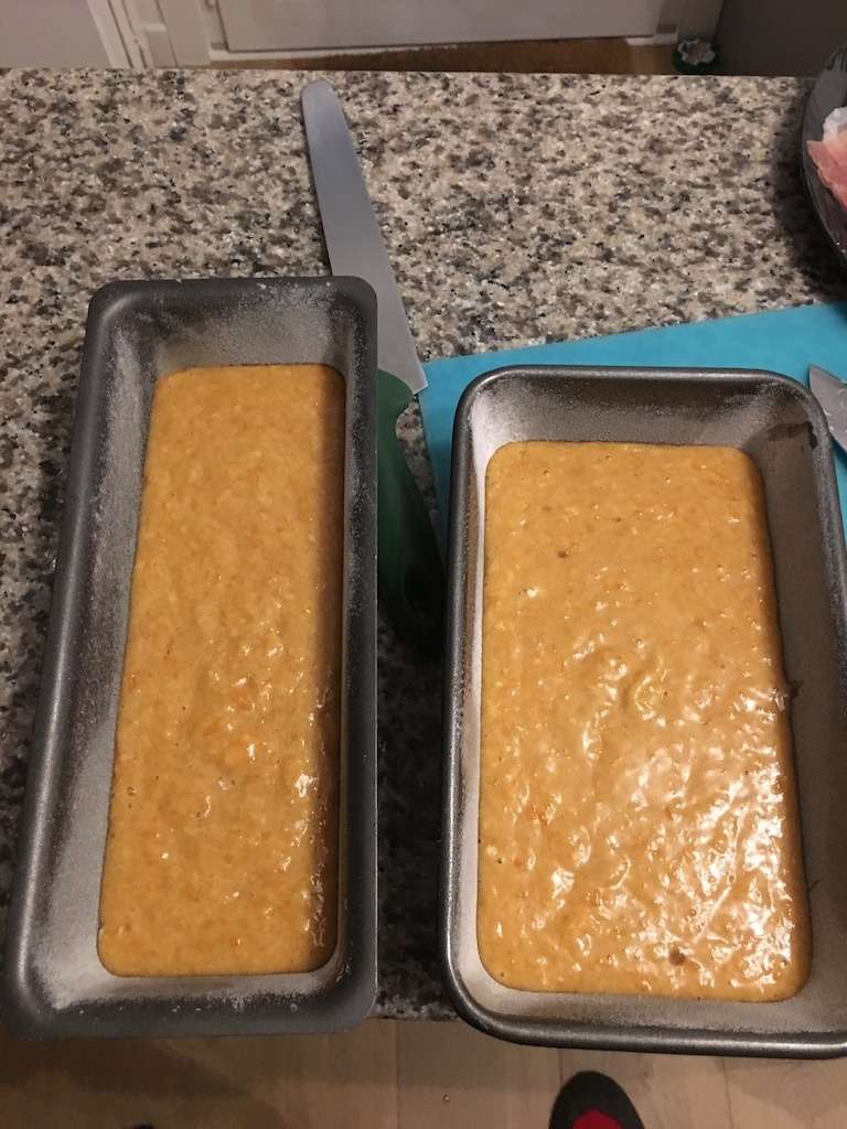 8. Verser dans 2 moules à cake préalablement beurrés et farinés.
