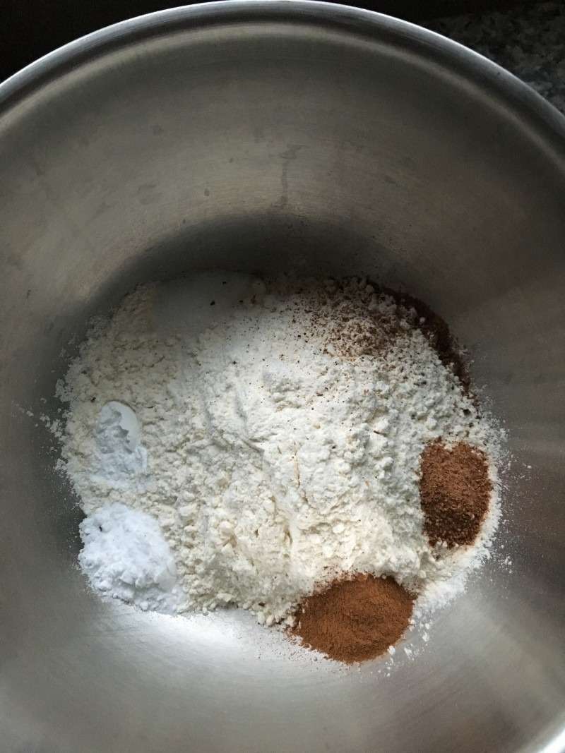 2. Dans un grand bol, mélanger la farine, les poudres à lever, le sel et les épices. Mélanger au fouet