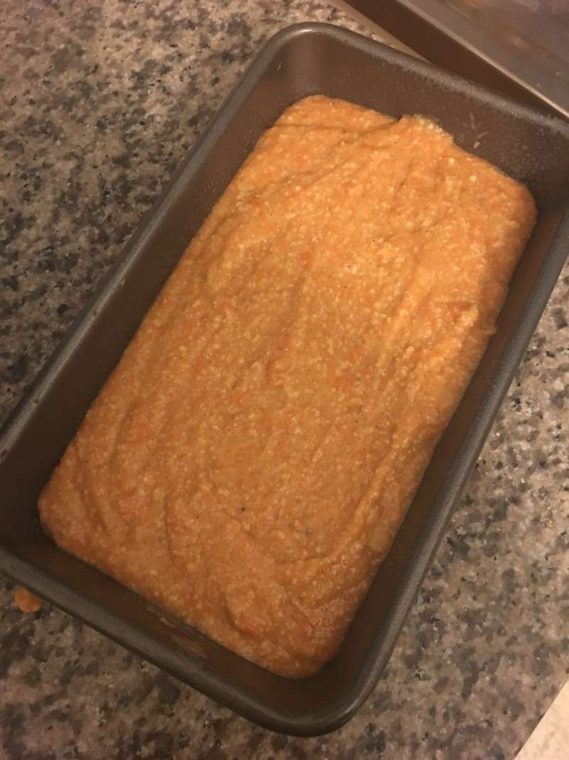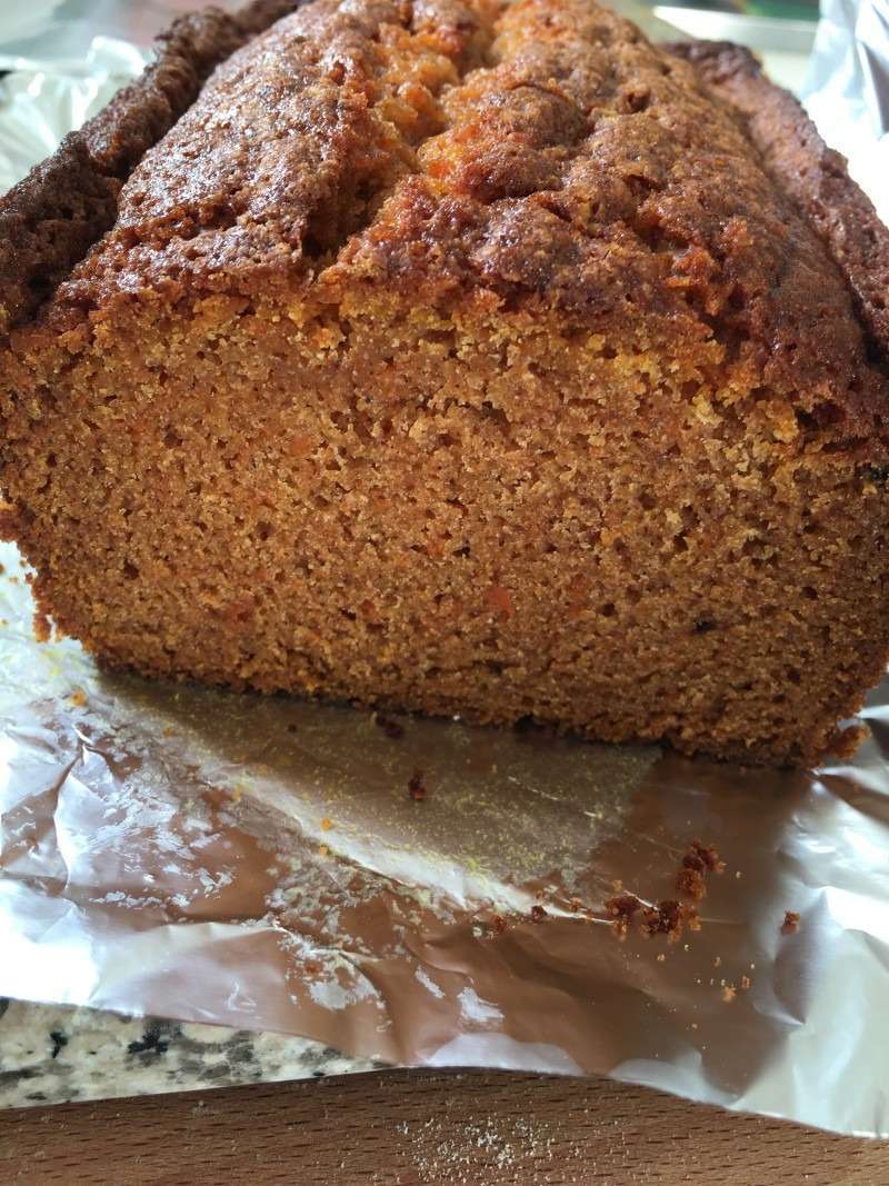 7. Verser dans un moule à cake ou un moule à pain anti-adhésif préalablement beurré. Enfourner pendant environ 1h15 dans un four à 180°C. N’hésitez pas à couvrir en milieu de cuisson d’une feuille d’aluminium si vous trouver que la coloration est un peu trop avancée.
