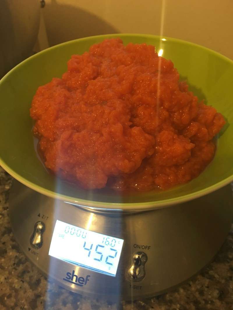 • 450 g de purée de citrouille (en boite ou préparée par vos soins à partir d’1 kg de citrouille)