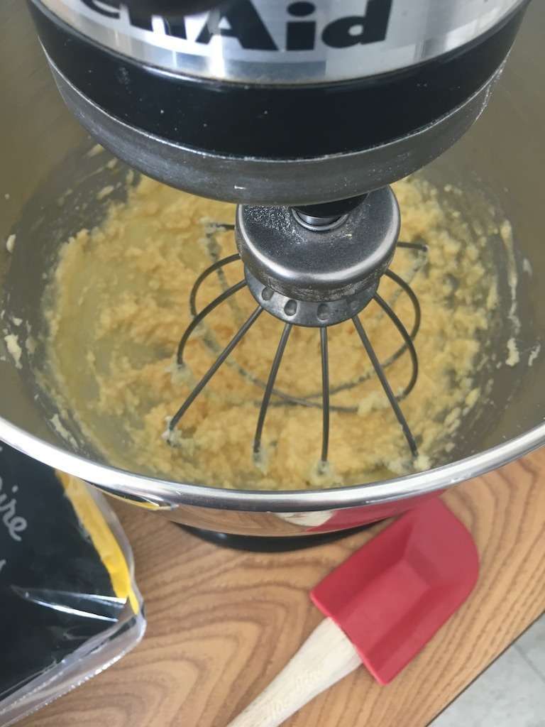 - Dans le bol de votre robot KitchenAid Artisan, mélanger au fouet le beurre et le sucre jusqu’à l’obtention d’un mélange homogène et aéré.