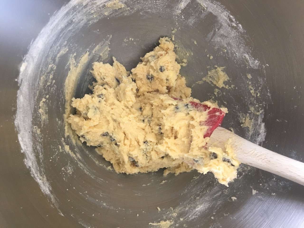 - Pour obtenir la pâte à cookies, terminer en ajoutant la farine et les pépites de chocolat et en mélangeant à l’aide d’une maryse ou de la feuille-maryse adaptée de votre robot.