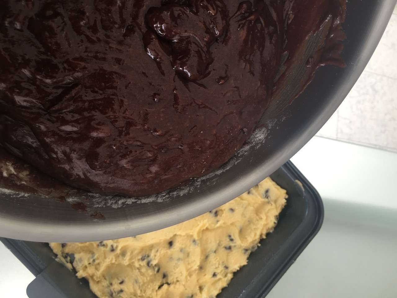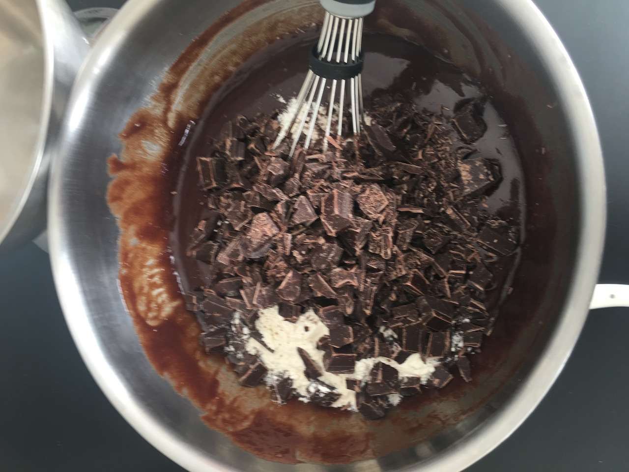 - Terminer en ajoutant la farine, la levure, le sel (ou le mélange des 3) et les éclats de chocolat.