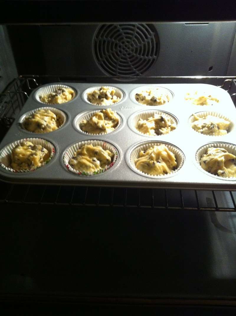 6) Remplir chacun des moules aux deux tiers avec la pâte à muffins.