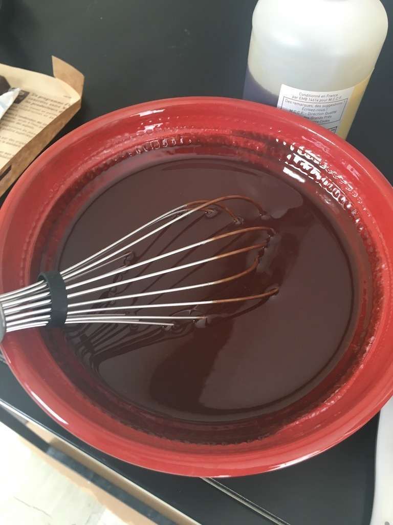 - Dans un bol, placer le beurre et 200-225g de chocolat coupé en morceaux. Faire fondre doucement à l’aide du programme de décongélation de votre micro-ondes. Il faut compter généralement environ 5 minutes. Bien surveiller pour ne pas bruler votre chocolat et mélanger de temps à autres. Réserver.