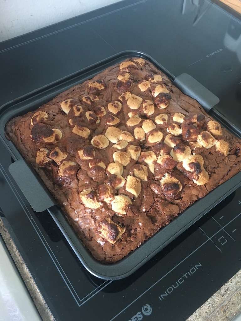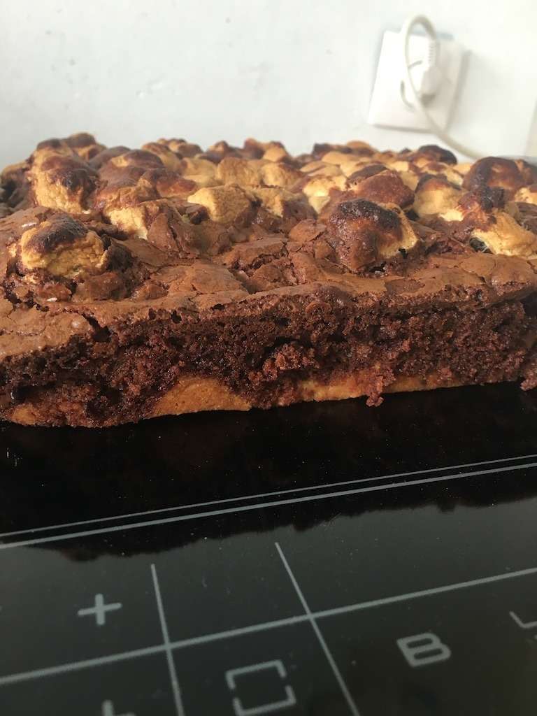 - Sortir rapidement du four pour y insérer les marshmallows dans la pâte à brownie.