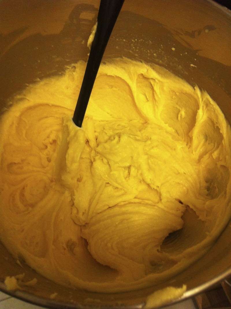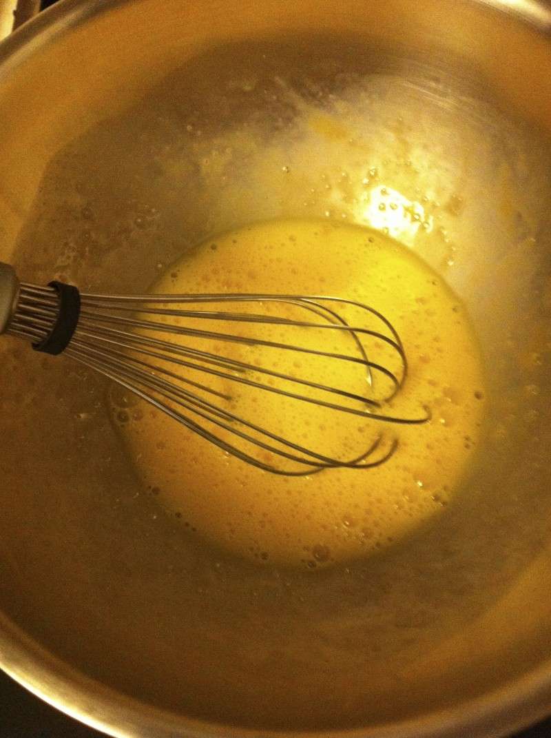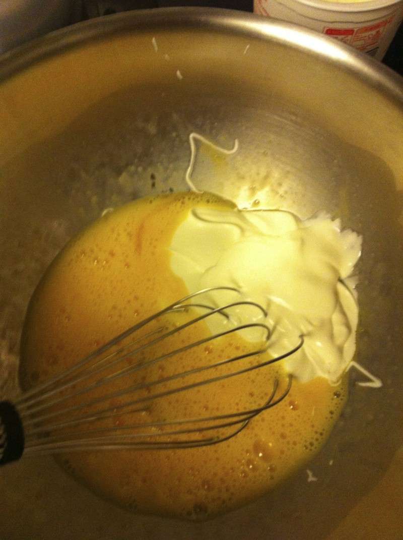2) Y ajouter les jaunes et fouetter.