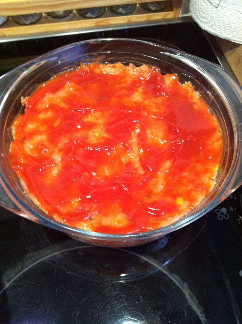 10) Tasser la viande puis mettre le ketchup sur le dessus.